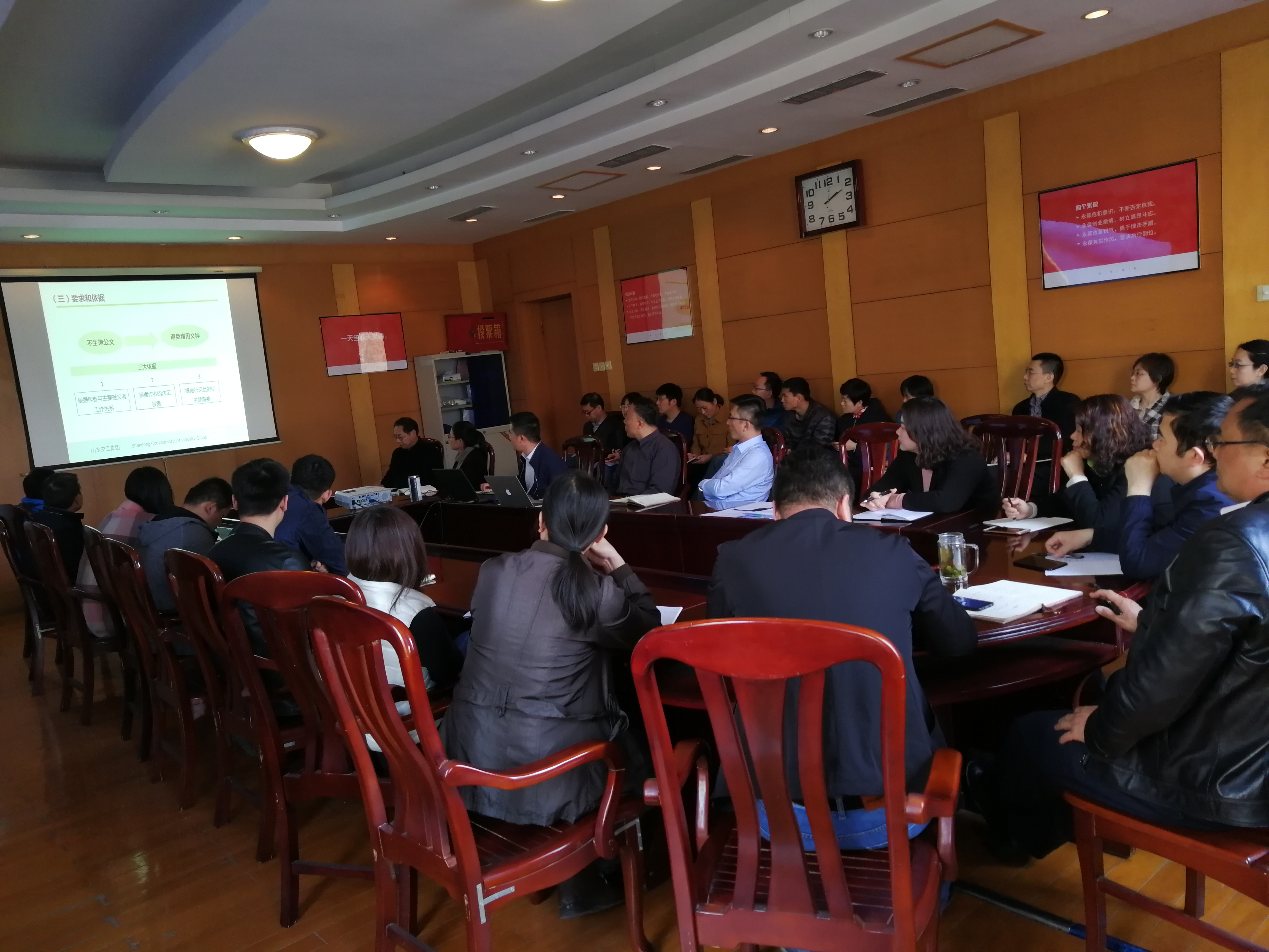 辦公室主任宋茂兵作了題為《公文培訓(xùn)》的專題講座。講座結(jié)合工作實(shí)際,分別從公文種類、公文格式、公文寫作步驟、常見問題舉例四個方面做了詳細(xì)全面的講解,運(yùn)用相關(guān)案例分析了公文寫作方面存在的問題與不足,與職工進(jìn)行現(xiàn)場互動,答疑釋惑,使大家對公文寫作有了更新的認(rèn)識。