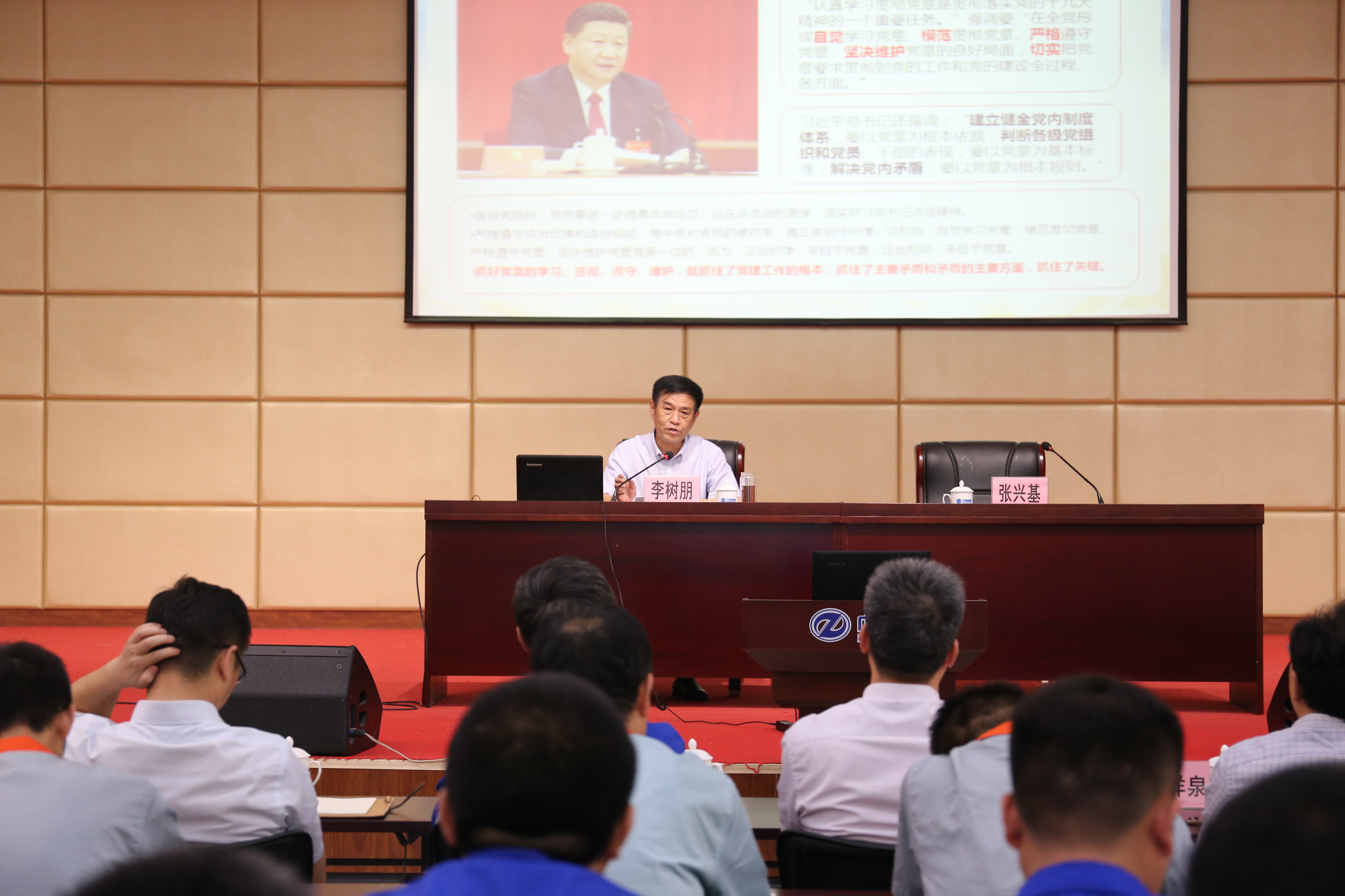 7月17日,根據集團黨委關于“不忘初心、牢記使命”主題教育工作安排,集團黨委書記、董事長李樹朋帶領班子成員赴中通集團開展調研,并為黨員干部講了一堂題為《學習黨章、貫徹黨章、遵守黨章、維護黨章》的專題黨課。