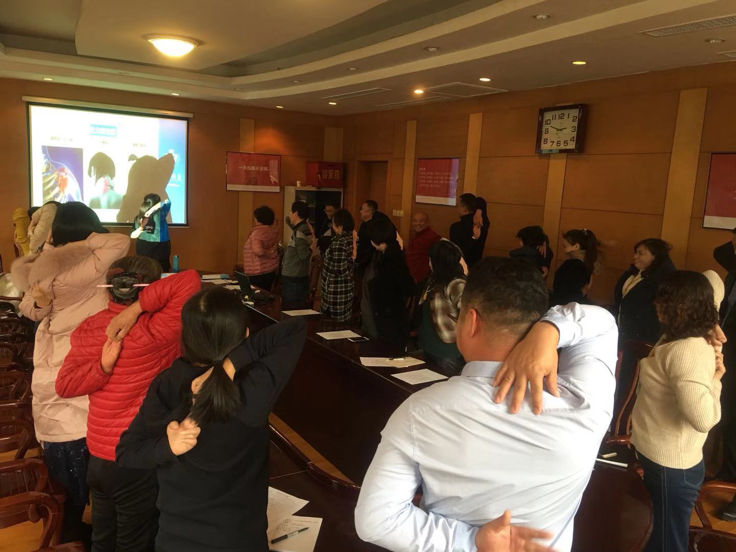 本次講座圍繞“突發(fā)意外事故衛(wèi)生應(yīng)急處置和緊急救護(hù)知識(shí)”、“霧霾的危害及防護(hù)知識(shí)講解”、“職工常見病、職業(yè)性疾病和慢性疾病的預(yù)防和改善”三個(gè)方面開展。于老師為大家詳細(xì)講解了如何在突發(fā)事故中正確自救、互救,為大家普及霧霾的危害如何進(jìn)行日常防護(hù)的知識(shí),并為大家演示常見職業(yè)病的自我糾正及鍛煉方法。
